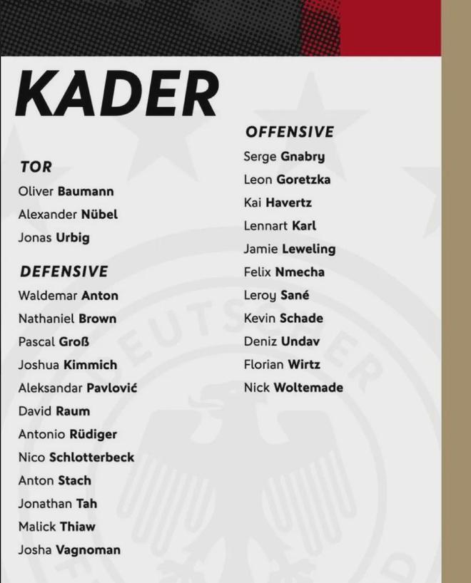 德国足协公布了最新一期国家队大名单,哈弗茨入选。
