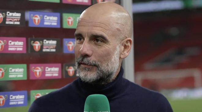 在英联杯决赛2-0击败阿森纳后,曼城主帅瓜迪奥拉接受了ITV体育的采访。
